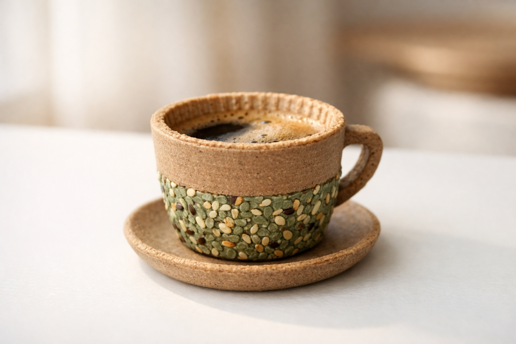 食べられる容器とサステナブルなコーヒー体験を通して、 日常の選択から環境への意識を自然に育てるカフェブランド。